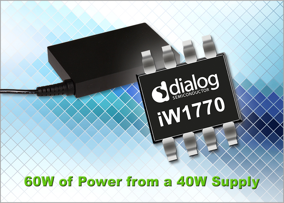 高集成電源管理、AC/DC、固態照明和藍牙智慧無線技術提供商 Dialog 半導體有限公司,今日發佈其最新的 iW1770 PrimAccurate 主側控制器,該產品以 40W 的電源提供 60W 的瞬間功率,消除了對超大電源元件設計的需求,支援適用於 Ultrabooks、網路設備及其他家用電子產品的小型、輕便和高功率密度的適配器。