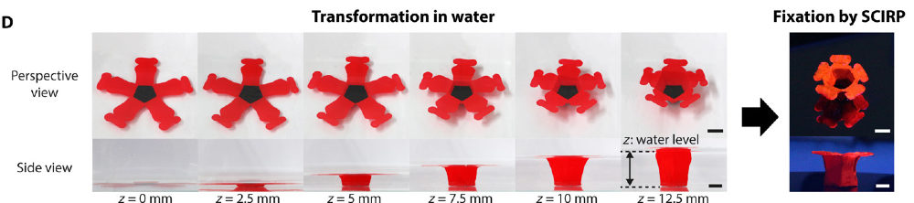 基於此,科學家打造 3D 結構的思路是 2D 轉成 3D──也就是說,基於容易製備的 2D 結構,構建複雜的 3D 結構,從而使 3D 製造的效率提升、難度降低。之前就有科研團隊透過將 2D 平面薄片摺疊、彎曲和組裝,實現諸如摺紙、形狀記憶複合材料甚至 4D 列印的例子。