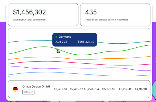 Deel 開發了海外遠端/外包員工和薪資管理平台,各國有多少員工,上個月境外薪資分佈,員工合約狀態,在這一站式平台就可輕鬆查看: