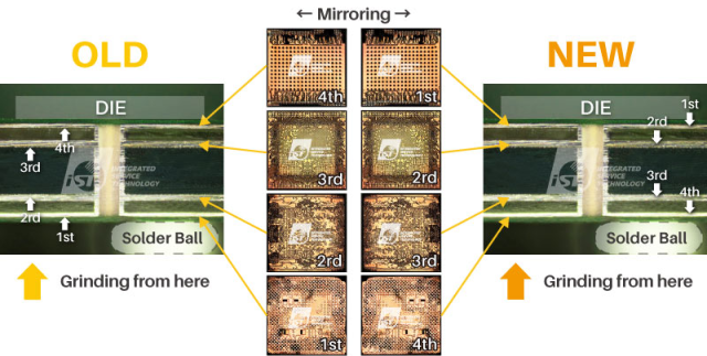 ▲圖三(左):從錫球面進行研磨,而非從 IC 正面端拍照,拍照與疊圖順序會是鏡向狀態,較不好判讀;圖三(右):透過宜特提供的獨家看圖軟體,能夠將各層照片大翻轉,並且從上至下疊圖。
