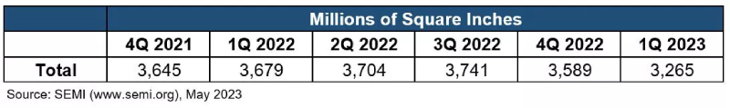 國際半導體產業協會(SEMI)統計,第一季全球半導體矽晶圓出貨面積持續減少,達 32.65 億平方英吋,季減 9%,顯示半導體需求疲軟。