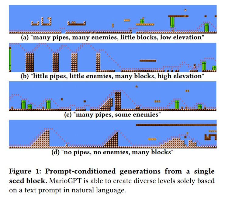 AIGC與遊戲開發的距離,比很多人想像更近。使用MarioGPT大語言模型,歐美研究者研發出「文字產生關卡」功能,並用來產生〈超級瑪利歐〉關卡。