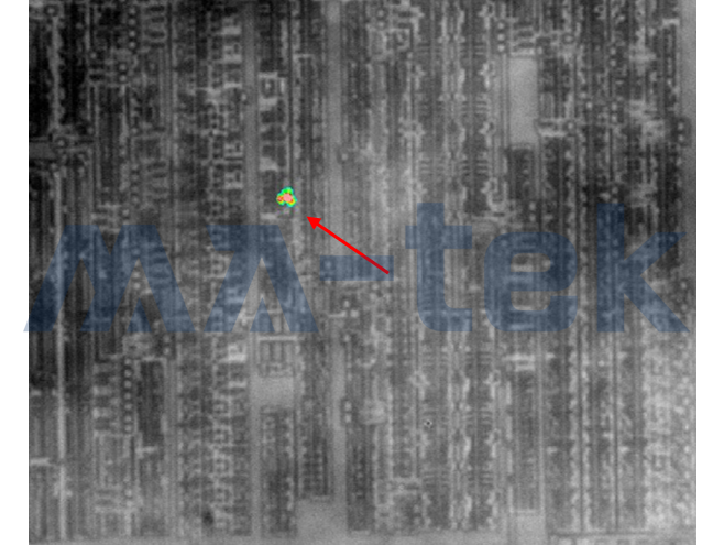 圖六:以晶背 EMMI 偵測方式發現 ESD 失效的亮點在邏輯電路上