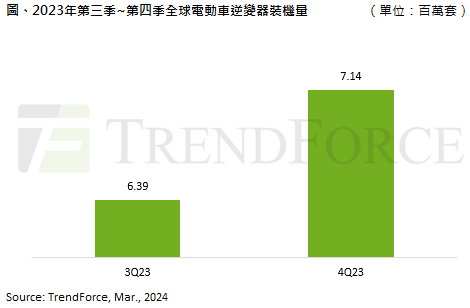 根據 TrendForce 全球電動車逆變器市場數據顯示,