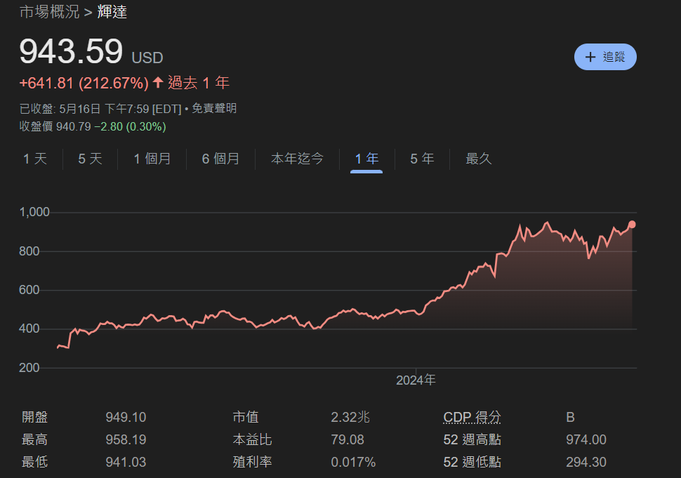 報導在替黃仁勳打抱不平,認為以他努力帶領輝達在人工智慧浪潮下取得的成績來說,似乎有很大的落差。先就整體公司表現來說,輝達截至 2024 年 1 月 28 日的 2024 財年營收,較前一年增加 126%,金額達到 609 億美元。獲利也成長近七倍,達到 330 億美元。從更詳細的內容來分析,運算和網路部門的營收為 474 億美元,成長 215%。圖形業務營收成長 28%,金額達到 135 億美元。而2024年以來,該公司股價已上漲 95%,市值超過 2.3 兆美元。