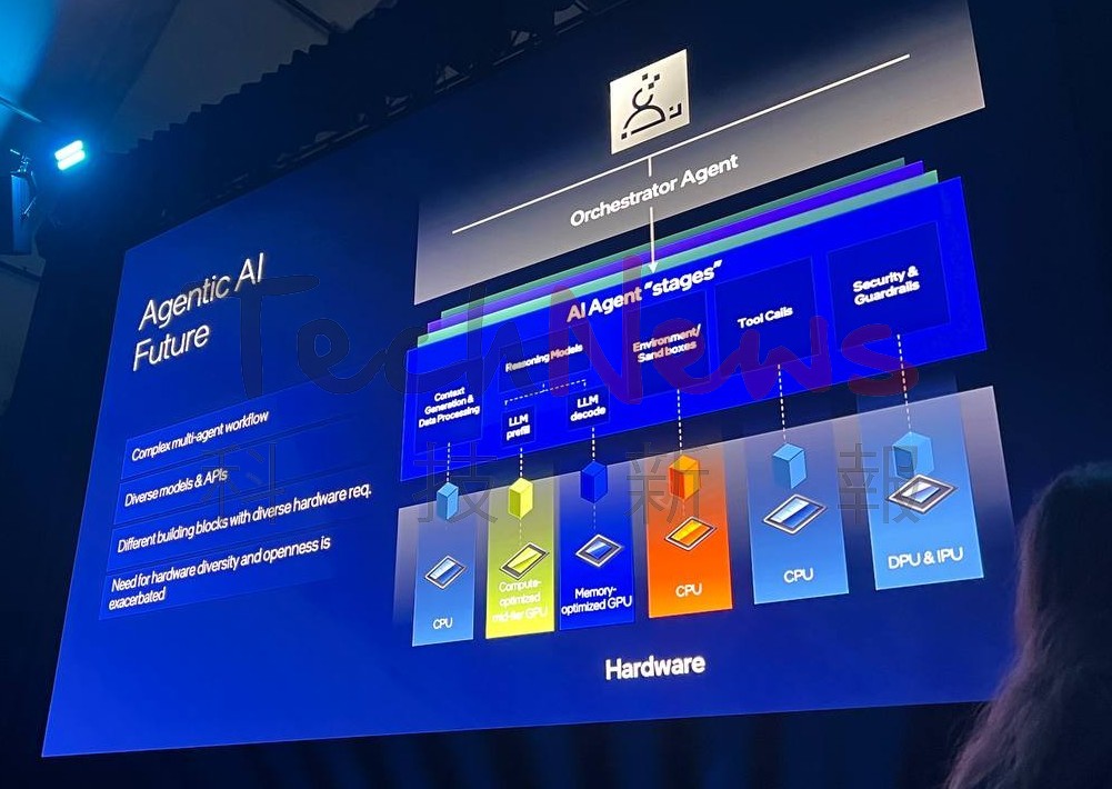 代工智慧工作負載極為多樣化。例如,即使是單一的大型語言模型推論呼叫,也包含「預填充」和「解碼」兩個階段。預填充需要計算最佳化的加速器,而解碼則需要記憶體頻寬最佳化的 GPU。此外,代理智慧體還需要 CPU 來處理環境運行(如編碼代理測試代碼)、工具呼叫以及安全防護。而由於每個組件對計算、記憶體頻寬和網路都有不同的要求,英特爾主張 「一體適用」 的同質化垂直整合架構不再適用。業界真正需要的是一個更靈活、開放且異構的基礎設施。