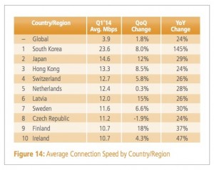 全球雲端服務供應商 Akamai 公佈 2014 年第一季全球城市網路速度調查,平均網速為 3.9 Mbps ,季增 1.8%,年增 24%,預期第二季全球連網速度將達 4Mbps。韓國 2013年整年積極擴增網路建設,在平均網速、高速寬頻、最高網速、行動網速等指標都遠勝其他國家,被認為是最具資格迎接 4K 時代的國家。 繼續閱讀..