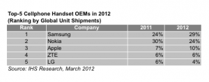 在 Galaxy S4 發表後,雖然各方似乎褒貶不一,不過市場研究調查公司 IHS iSuppli 認為 Galaxy S4 的上市,將會讓三星於 2013 年的市占成長比例達到 2012 年的一倍以上,成長比例達到雙位數的 11%。